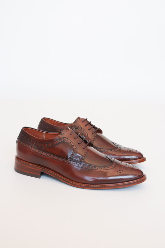 ZAPATO DERBY CRISTIAN DE CUERO CAFE BRILLANTE PARA HOMBRE / REF:LUZ CARACAS