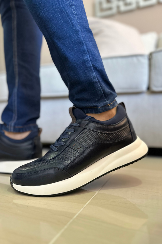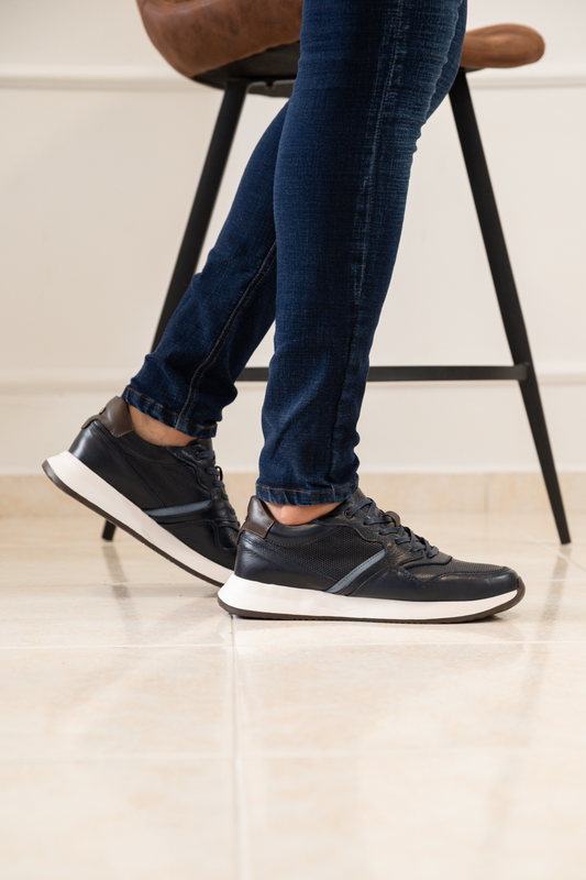 TENIS EN CUERO AZUL OSCURO PARA HOMBRE REF: FERRARA 3216