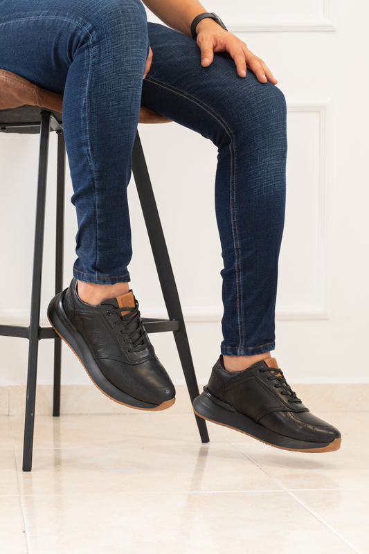 TENIS EN CUERO PARA HOMBRE COLOR NEGRO REF: 616 PARMA