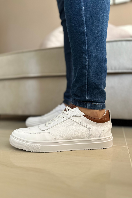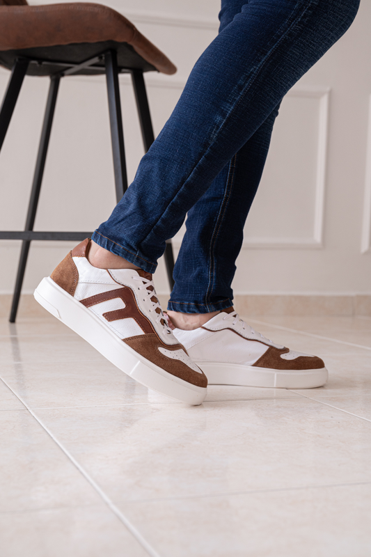 TENIS EN CUERO PARA HOMBRE COLOR BLANCO X MIEL REF: 616 PARMA