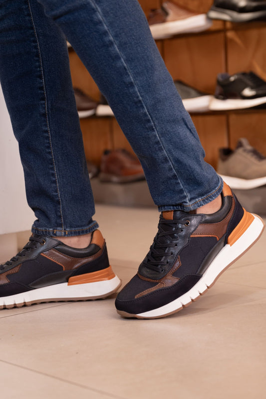 TENIS EN CUERO PARA HOMBRE COLOR COÑAC X AZUL REF: 616 PARMA