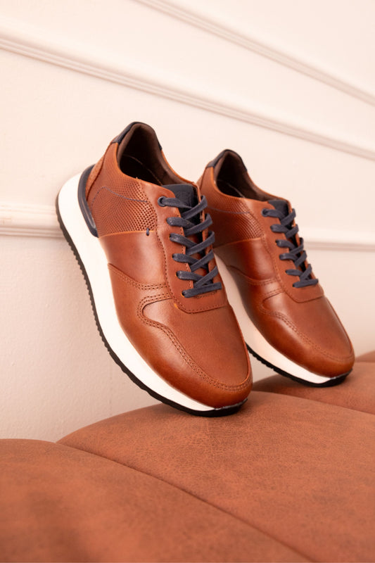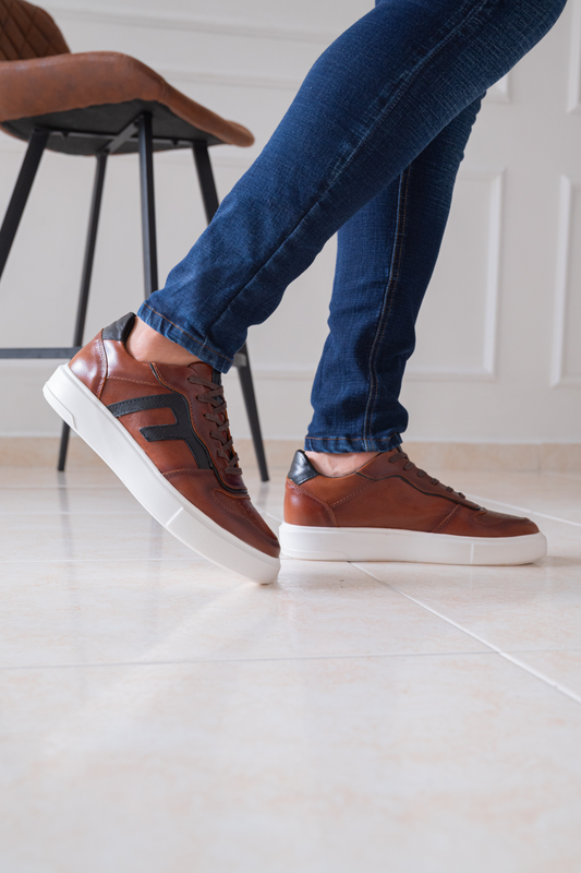 TENIS PARA HOMBRE EN CUERO COÑAC REF: ROMA 2123