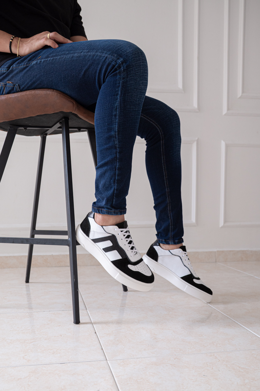 TENIS EN CUERO PARA HOMBRE COLOR BLANCO X NEGRO REF: 616 PARMA