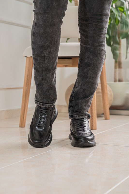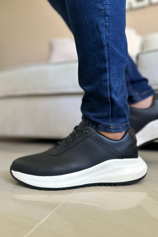 TENIS PARA HOMBRE EN CUERO NEGRO X NEGRO REF: VERONA 3205