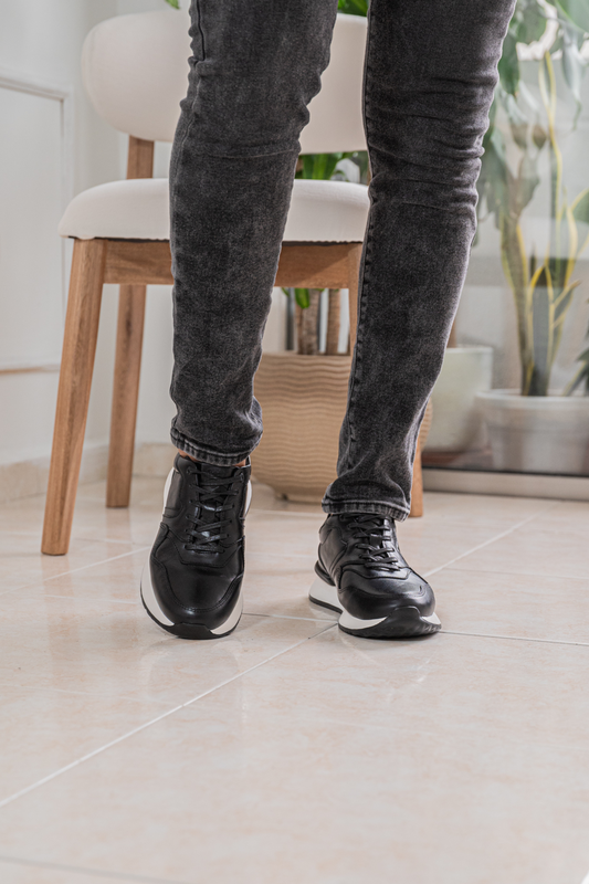 TENIS EN CUERO PARA HOMBRE COLOR NEGRO X CREMA REF: 3223 CATANIA