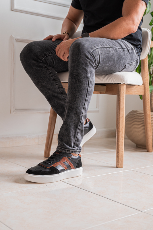 TENIS EN CUERO PARA HOMBRE COLOR NEGRO X MIEL REF: 616 PARMA