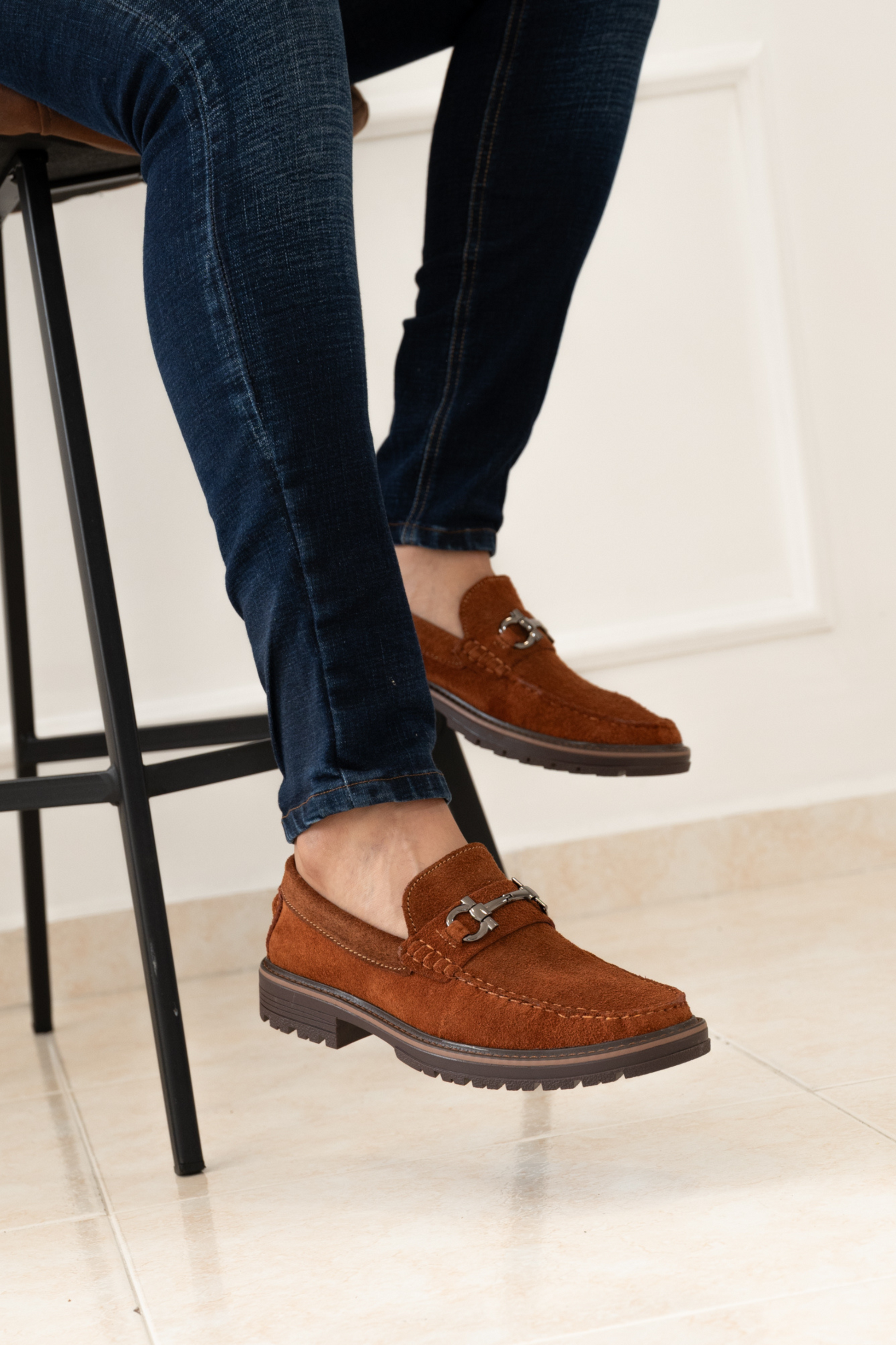 MOCASIN TIAGO PARA HOMBRE EN CARNAZA MIEL FORRO ROJO / REF 663