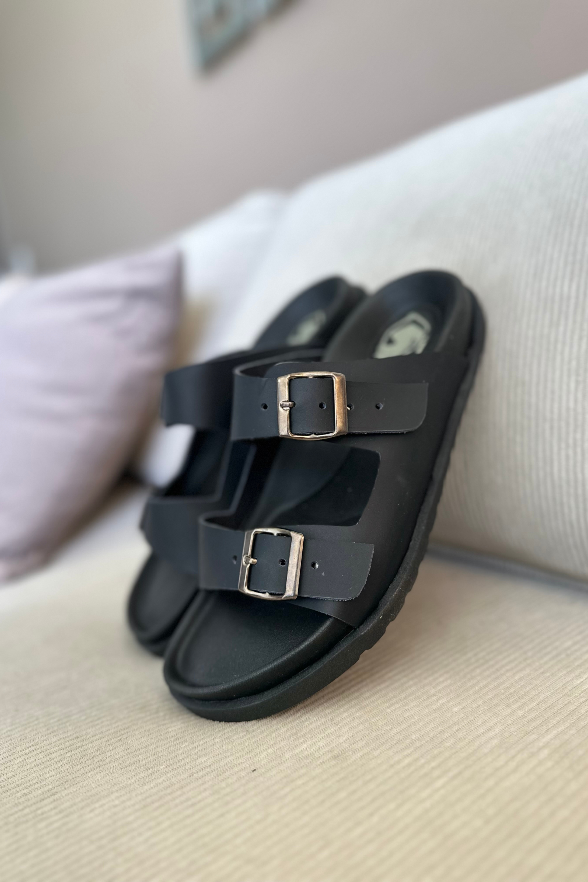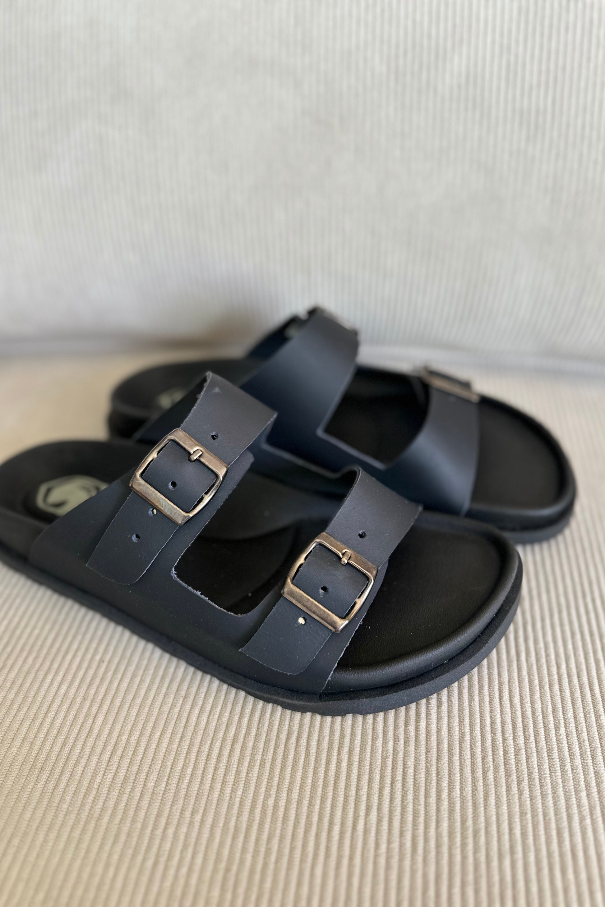 Diseñadas para quienes valoran la sencillez con carácter, las Évora combinan cuero genuino de acabado mate con un diseño de tiras cruzadas y hebilla metálica ajustable. Su plantilla acolchada y suela ligera brindan una pisada cómoda y relajada, mientras que su estética minimalista proyecta elegancia natural en cada paso.