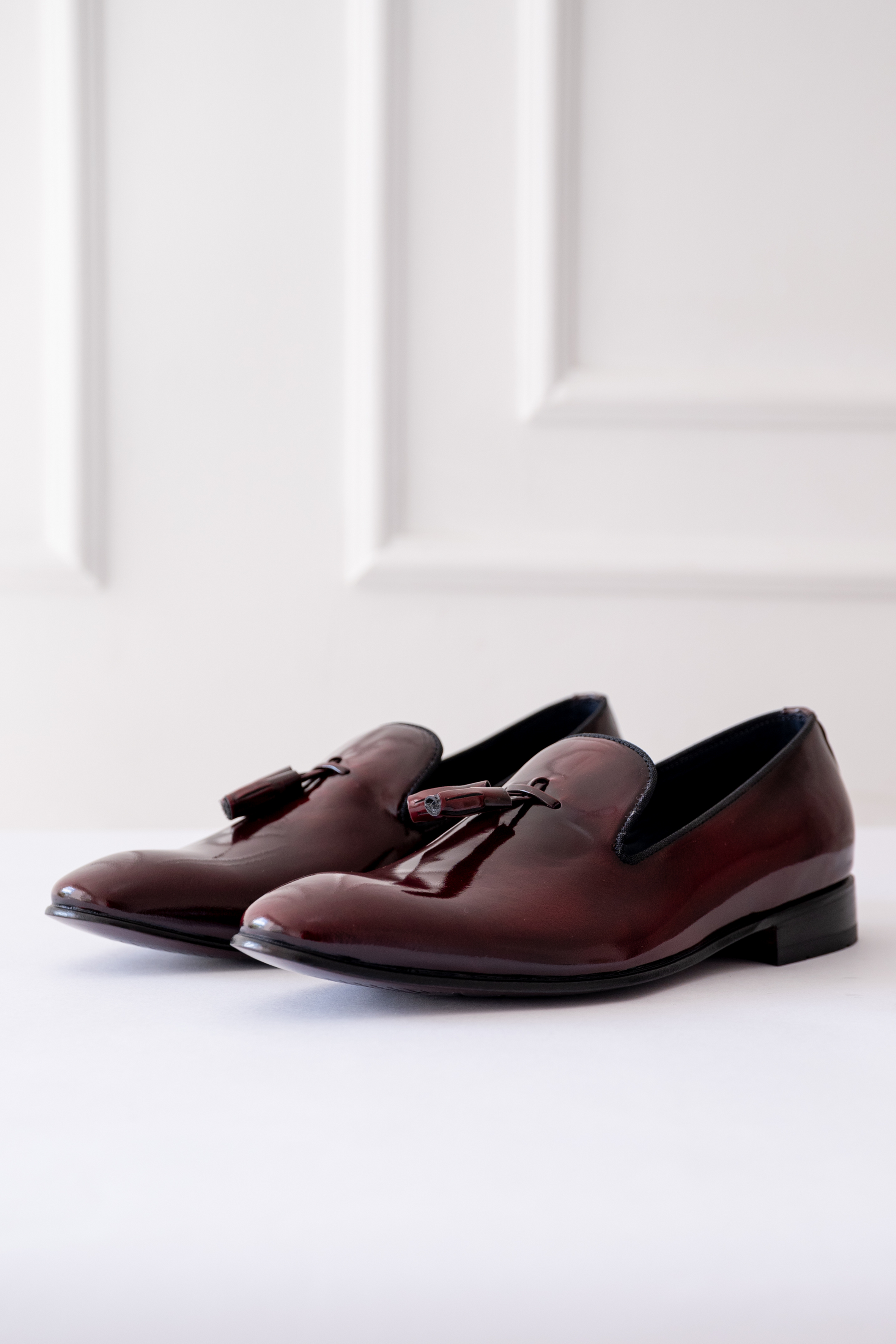 SLIPPERS BASILIO EN CUERO BRILLANTE VINOTINTO PARA HOMBRE / REF: LUZ 1707