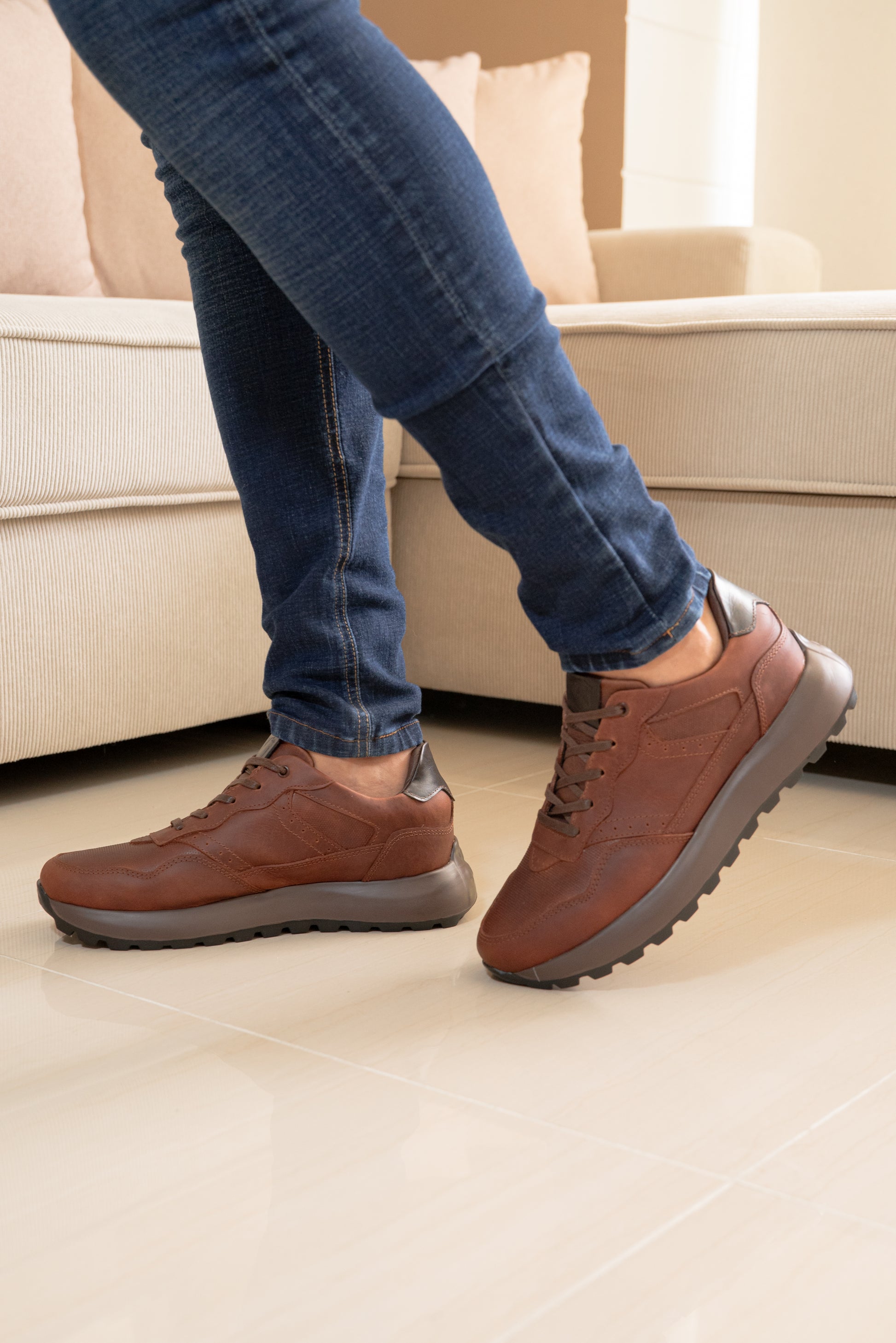 TENIS EN CUERO ENCERADO PARA HOMBRE COLOR COÑAC SUELA EVA | REF: DUBLIN B99