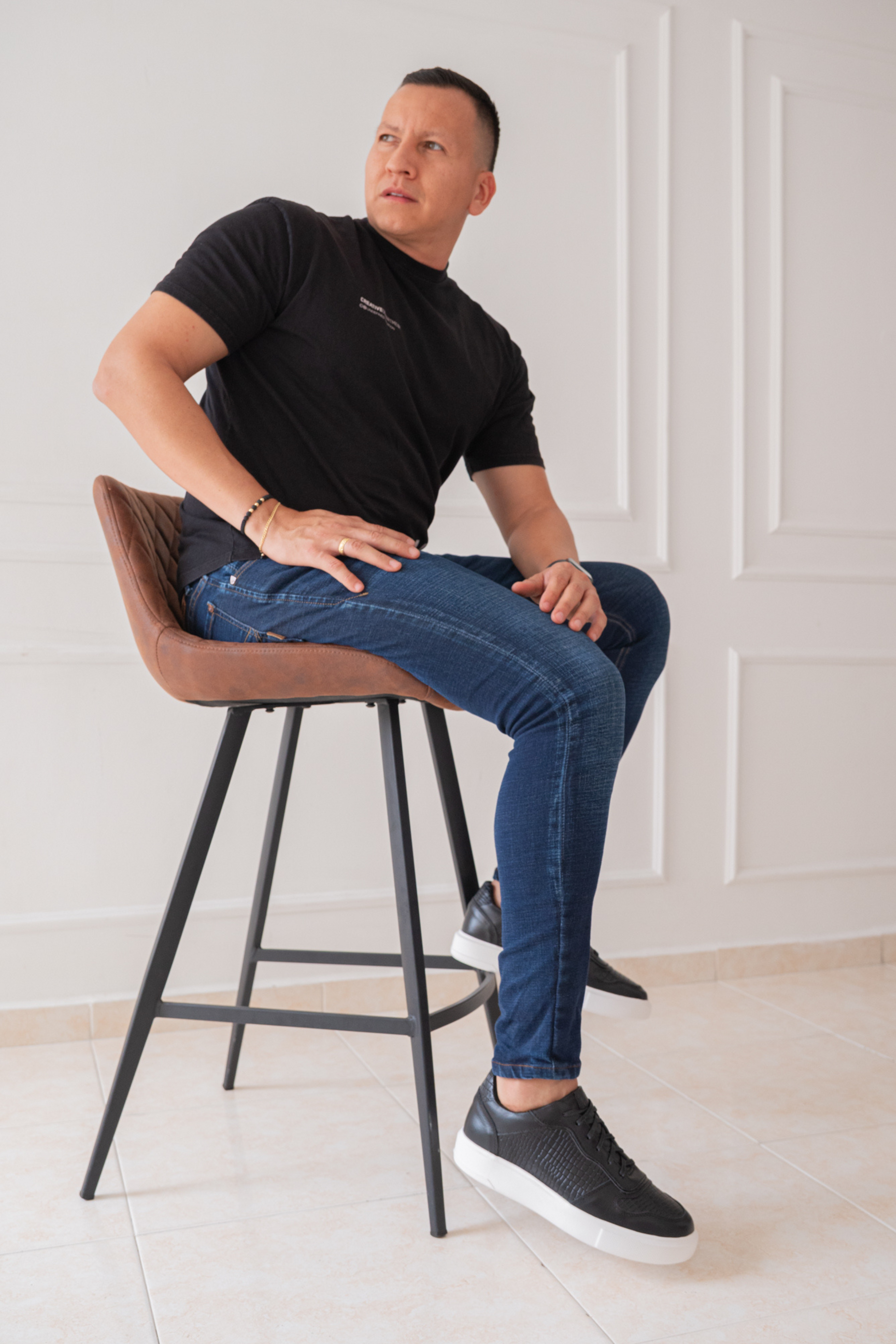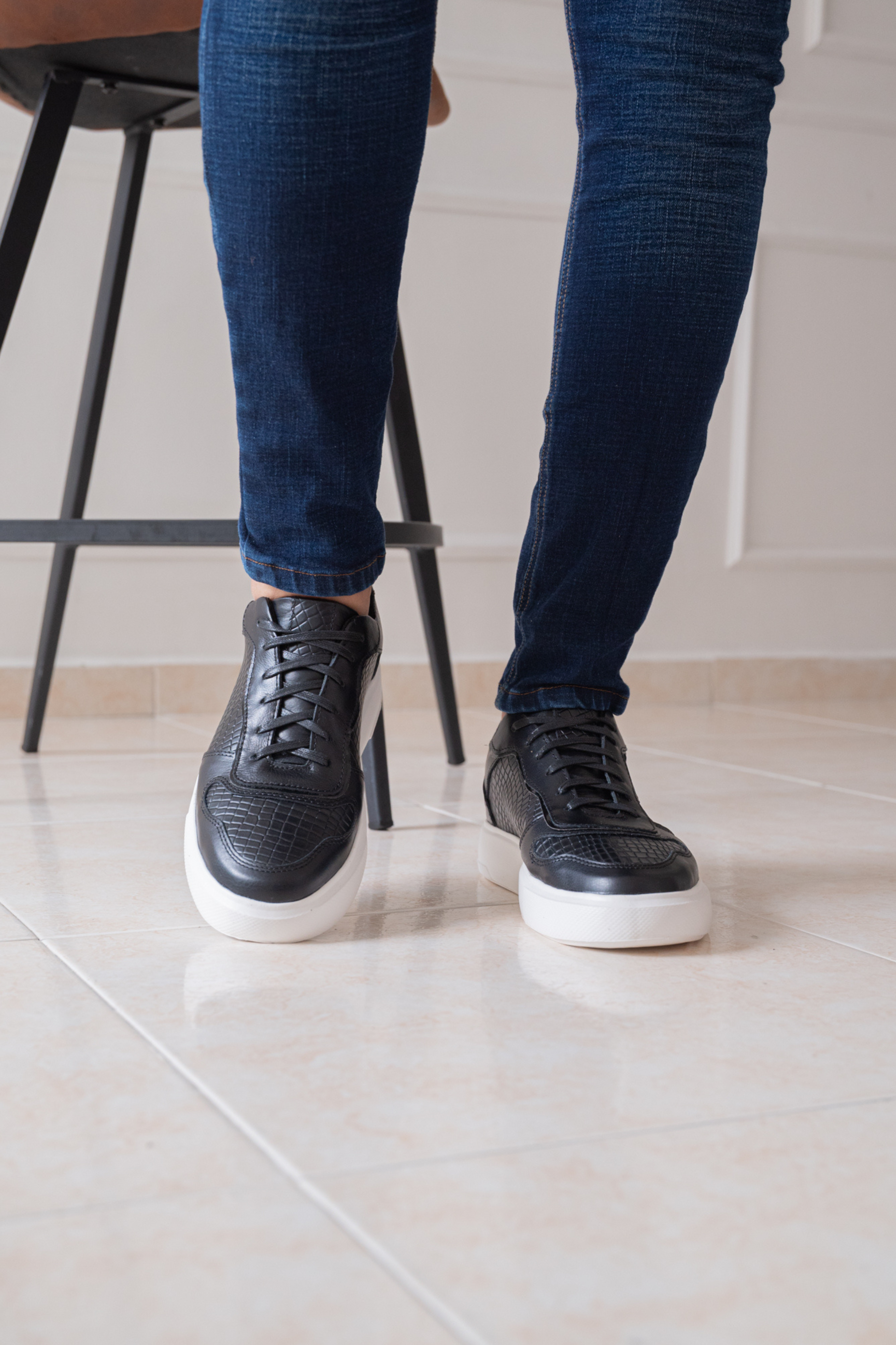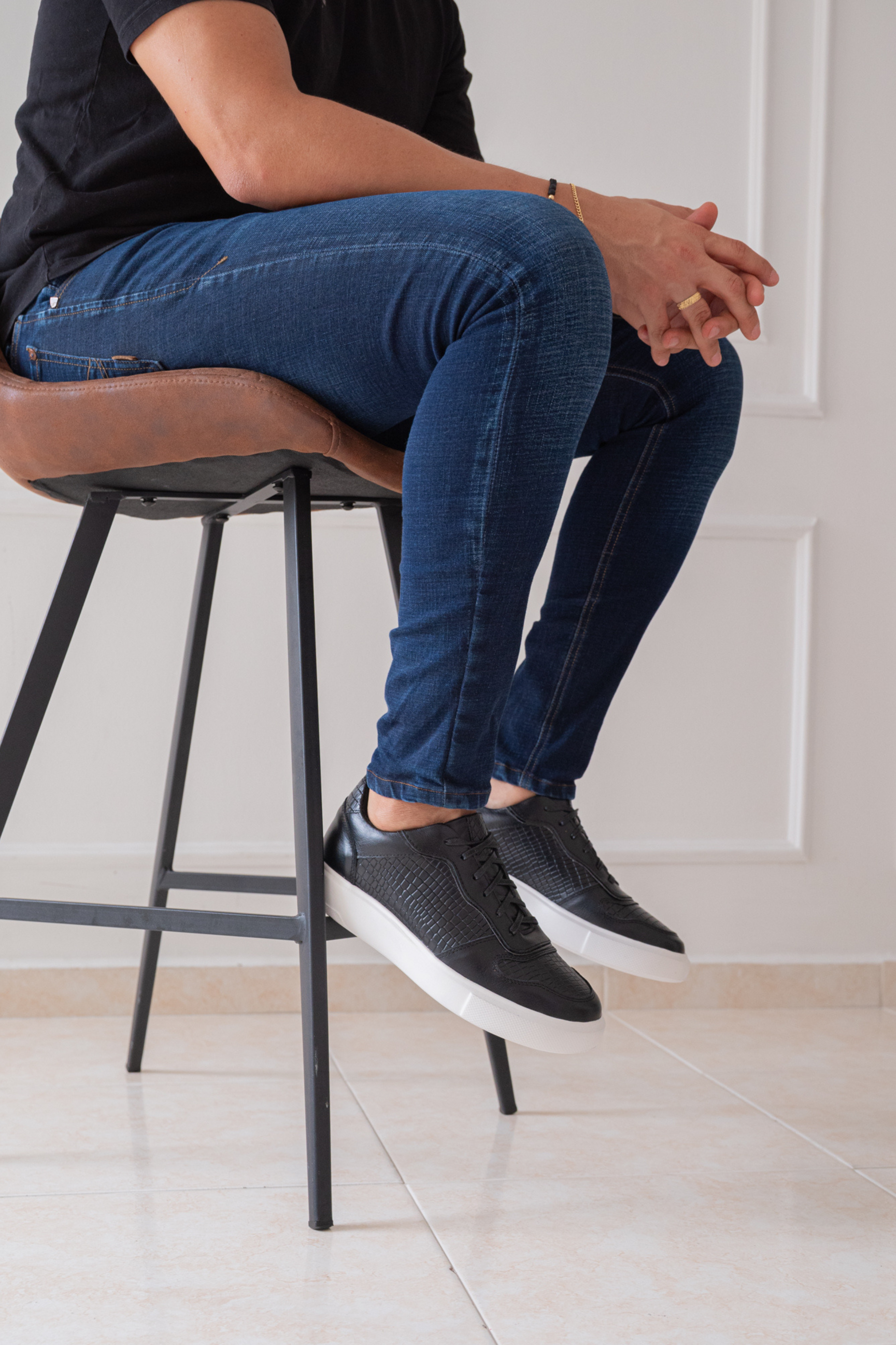 TENIS EN CUERO PARA HOMBRE COLOR NEGRO REF: 616 PARMA