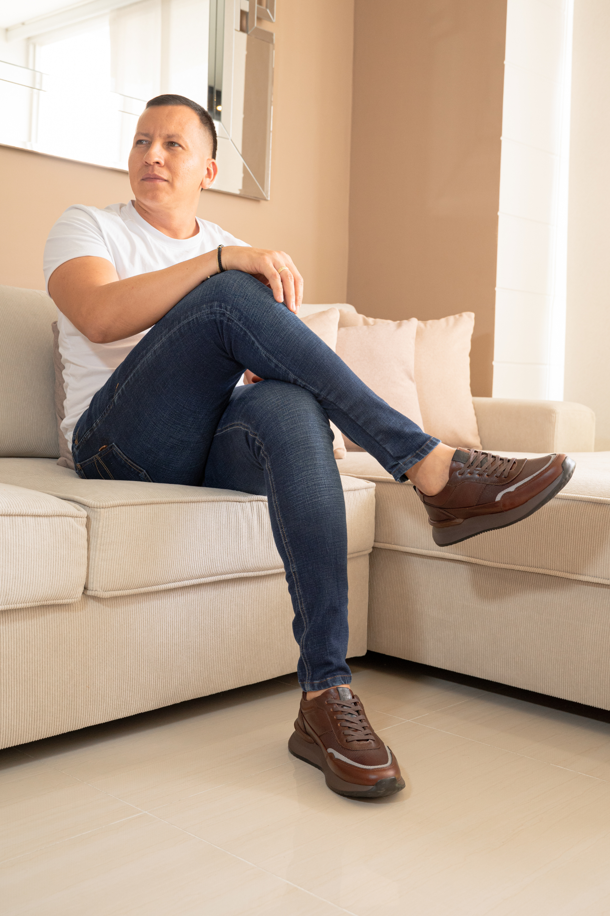 El modelo Sevilla es la expresión máxima de la sofisticación casual. Confeccionado con un suntuoso cuero color Coñac, este calzado irradia una calidez y profundidad visual que solo la más alta calidad puede ofrecer.