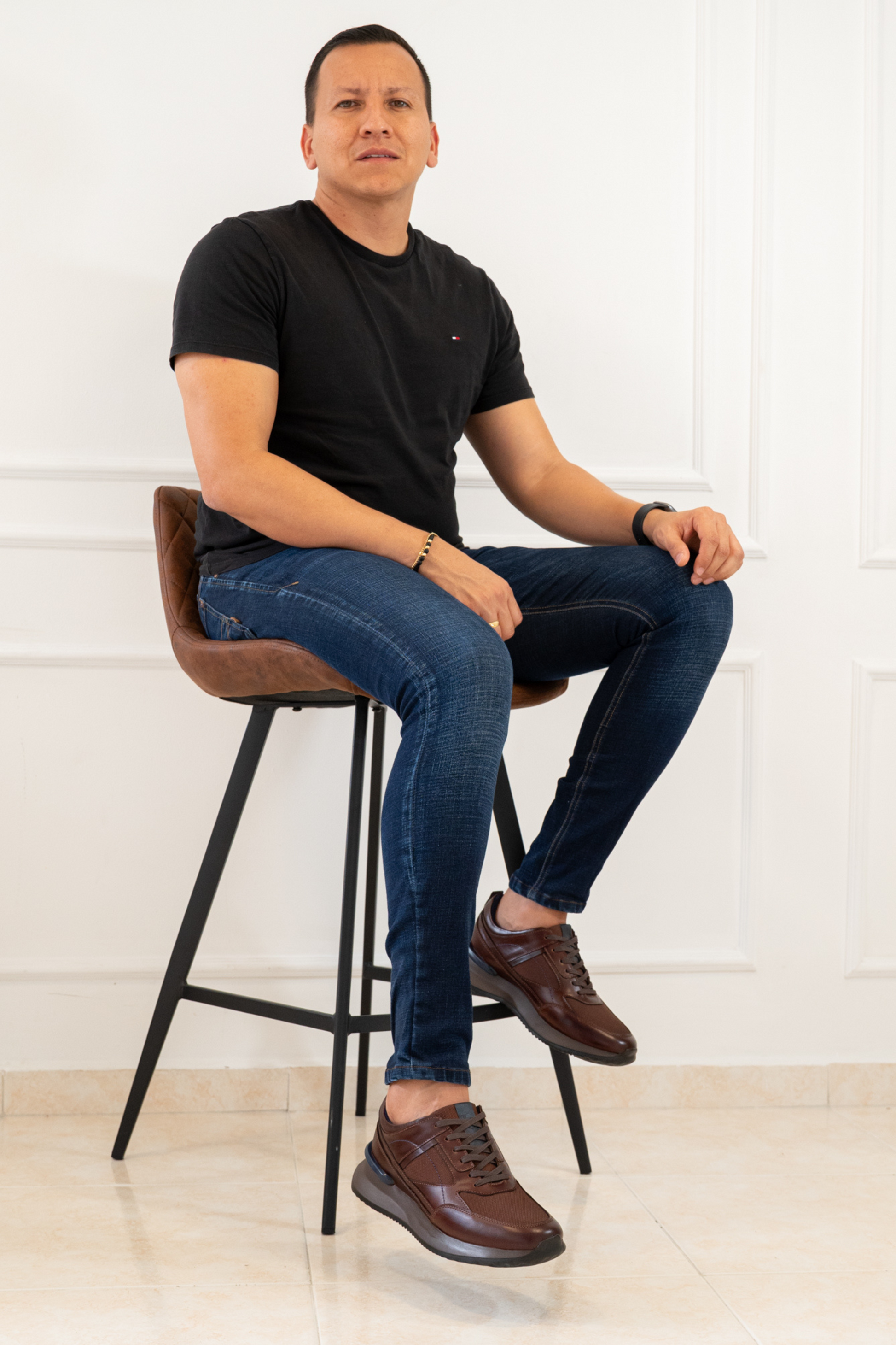 TENIS PARA HOMBRE EN CUERO COLOR MARRON X MALLA | REF: PALERMO 6414