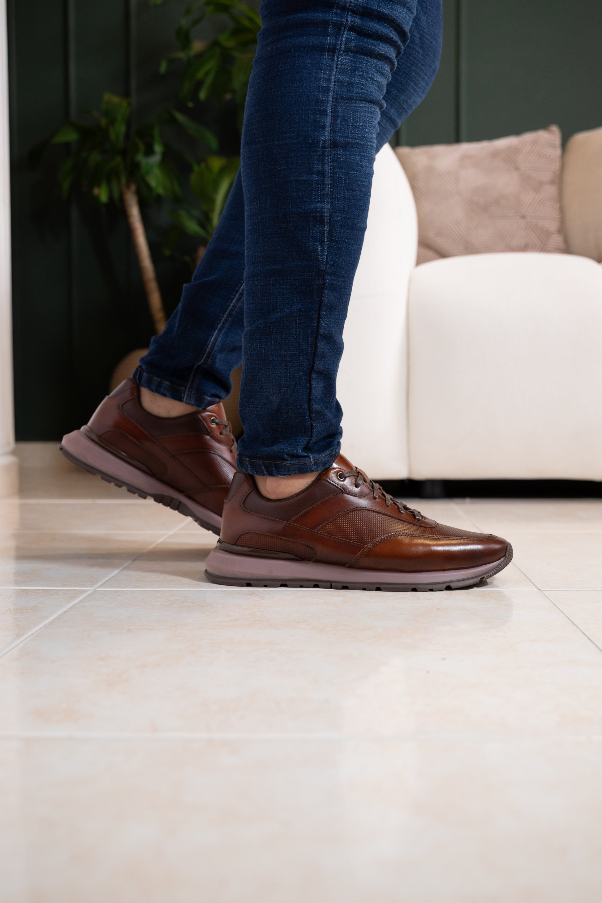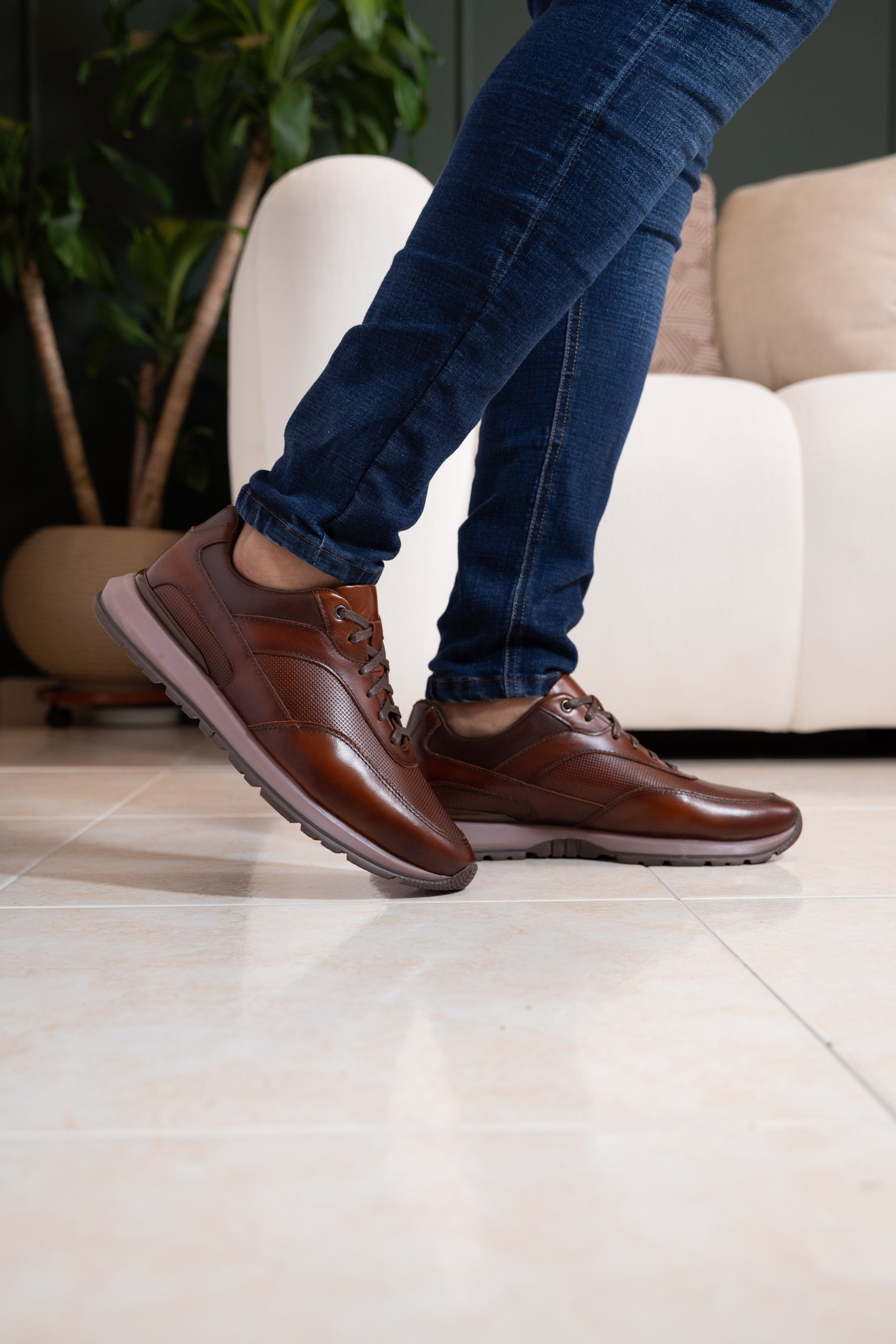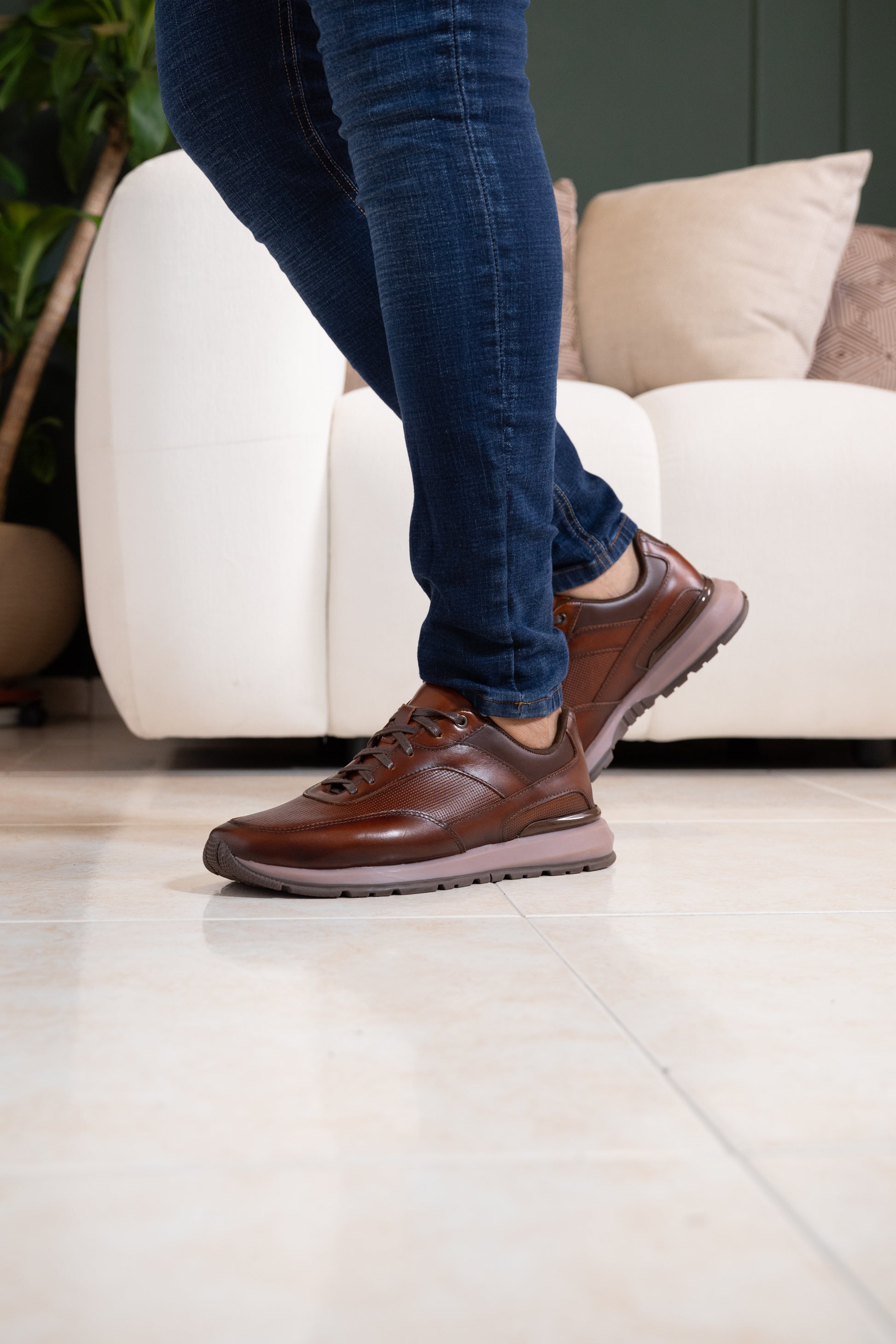 Tenis casual para hombre confeccionado en cuero coñac de excelente calidad. Cuenta con suela de TR resistente en tonalidad oscura que proporciona durabilidad y tracción en diferentes superficies. Los detalles aerografiados en el diseño le dan un toque personalizado y moderno. Ideal para quienes buscan comodidad y estilo en un calzado versátil que combina con múltiples outfits. Referencia GUAHITO.