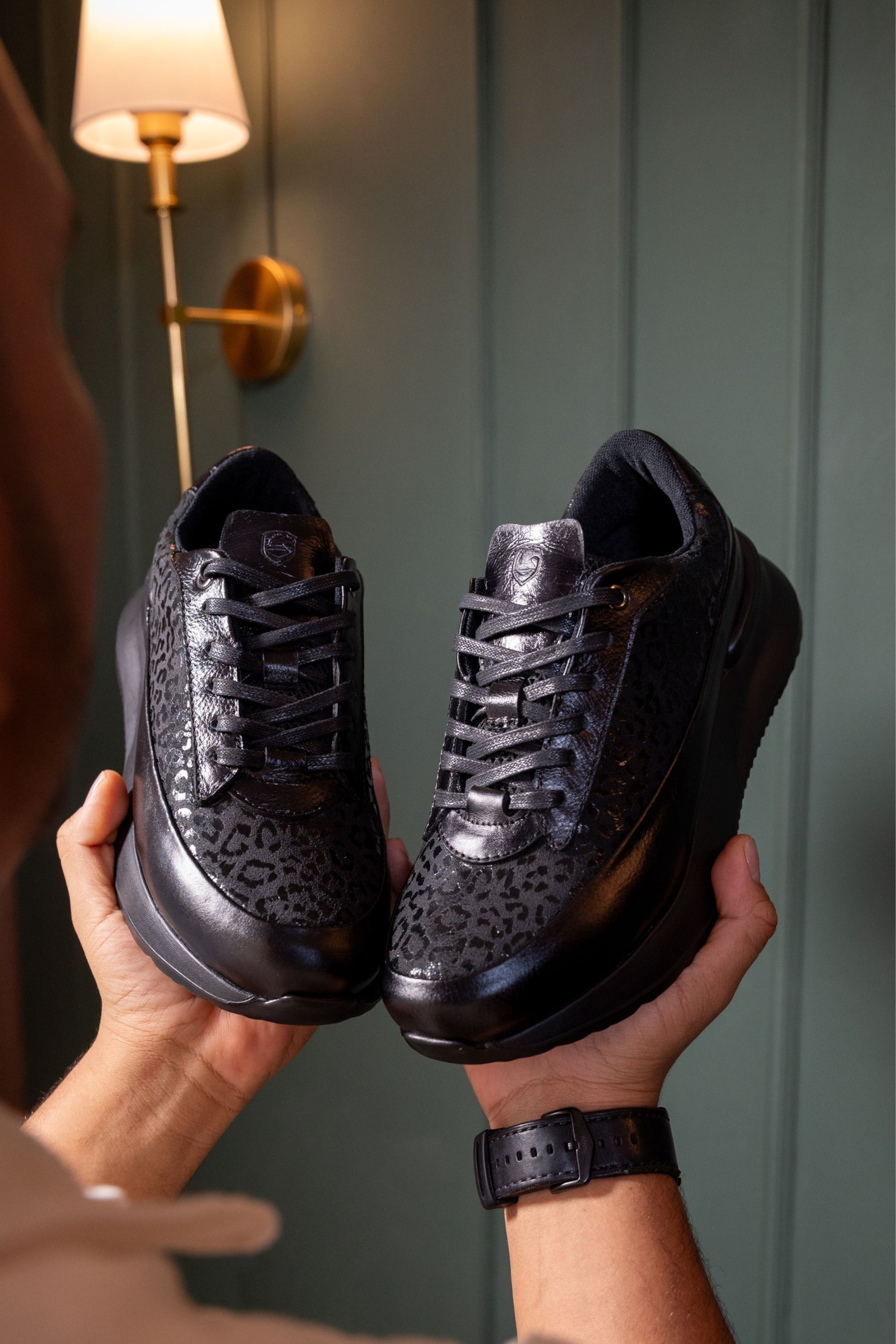 Tenis para hombre confeccionado en cuero folia tigrillo con diseño moderno y versátil. Cuenta con suela EVA liviana que proporciona comodidad excepcional al caminar, reduciendo la fatiga durante el día. Su acabado en negro lo hace ideal para combinar con diferentes estilos de vestuario, desde casual hasta semi-formal. Fabricado con materiales de calidad premium que garantizan durabilidad y resistencia al uso continuo. Perfecto para el hombre que busca estilo sin comprometer la comodidad en sus actividades diarias.
