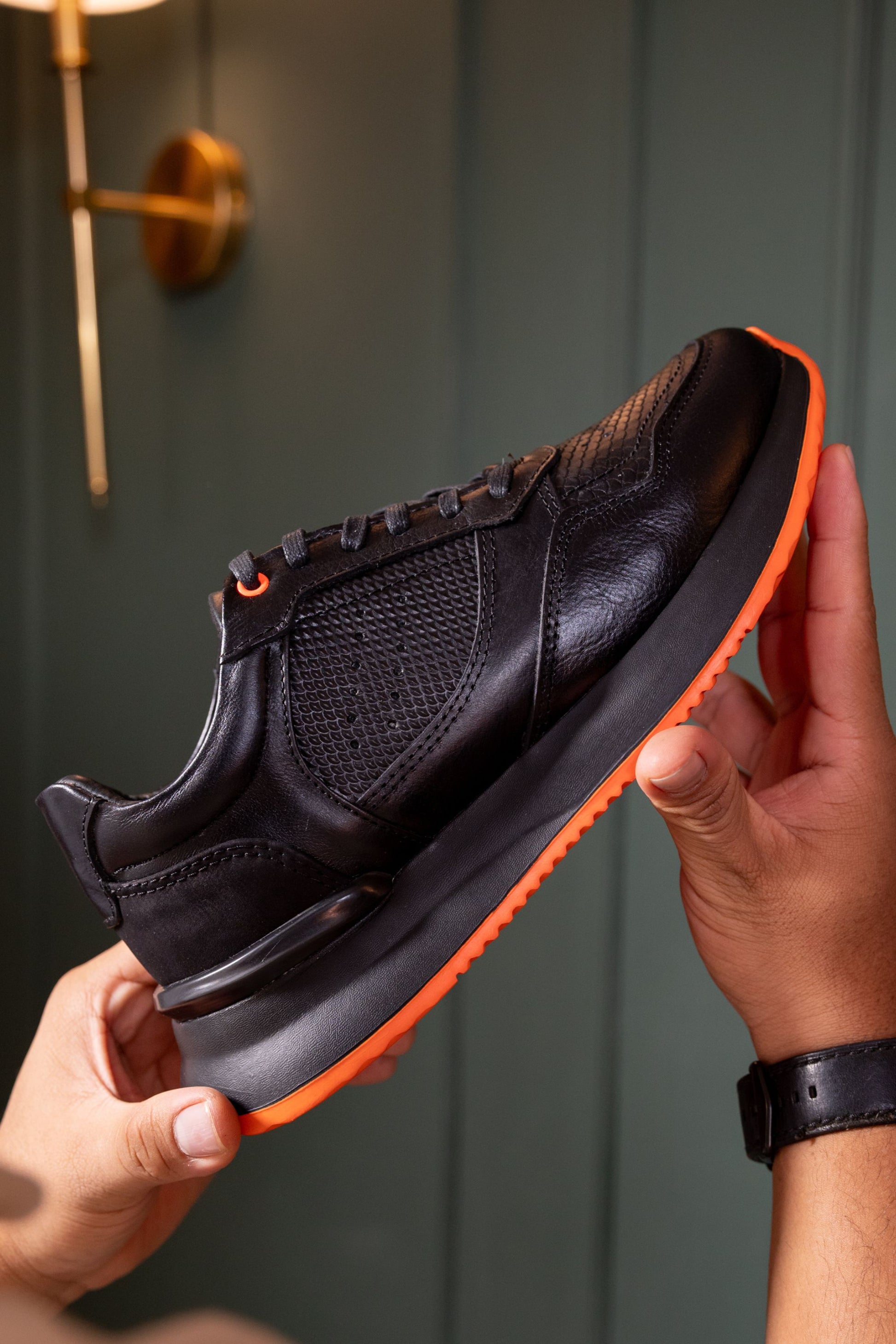 TENIS PARA HOMBRE EN CUERO NEGRO X NARANJA REF: D 12 IBIZA