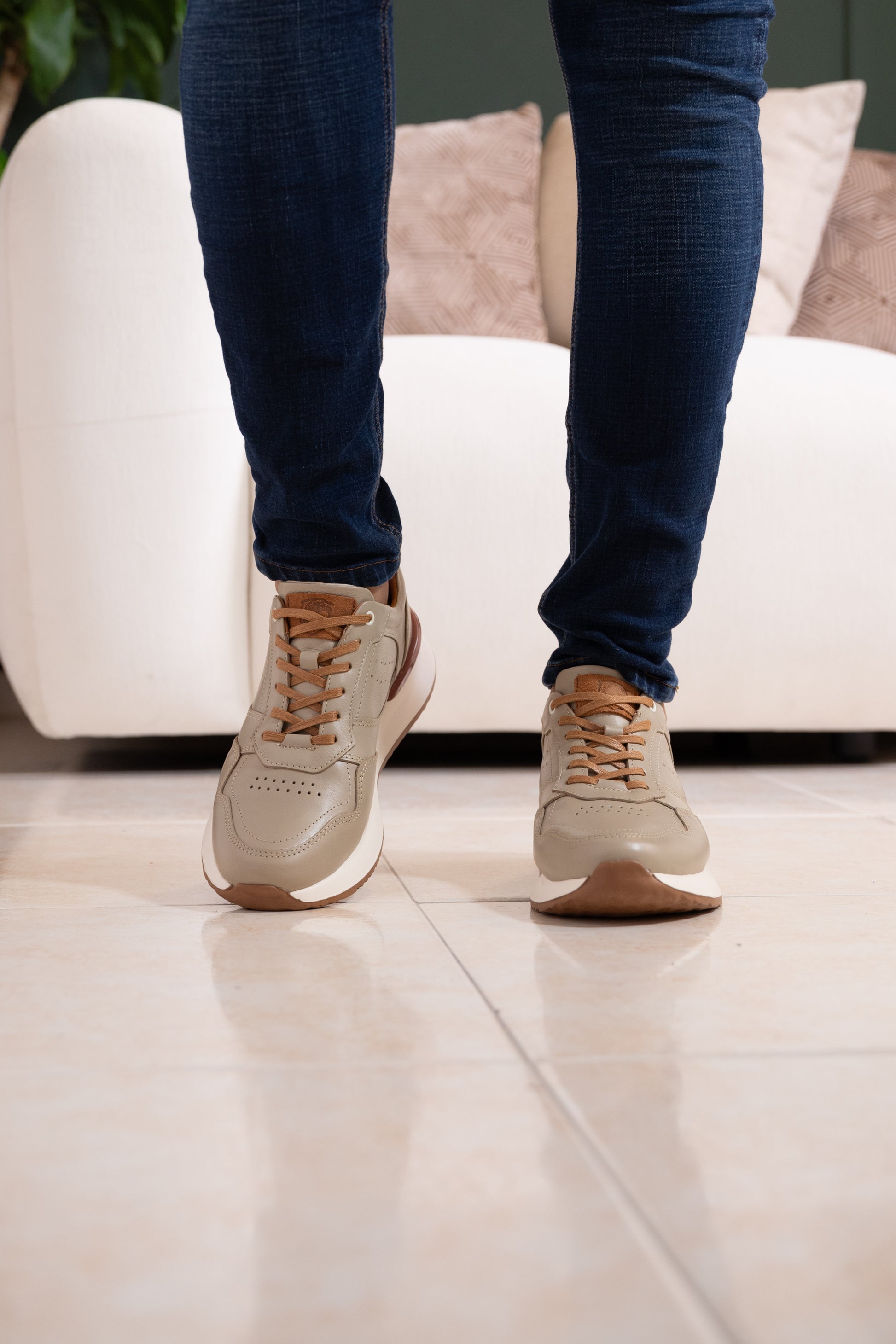 TENIS PARA HOMBRE EN CUERO BEIS X MIEL NEON REF: D 12 IBIZA